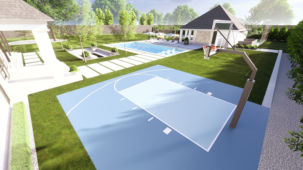 Properties with integrated design: Sport Courts that complement pool and outdoor living design, not standalone add-ons