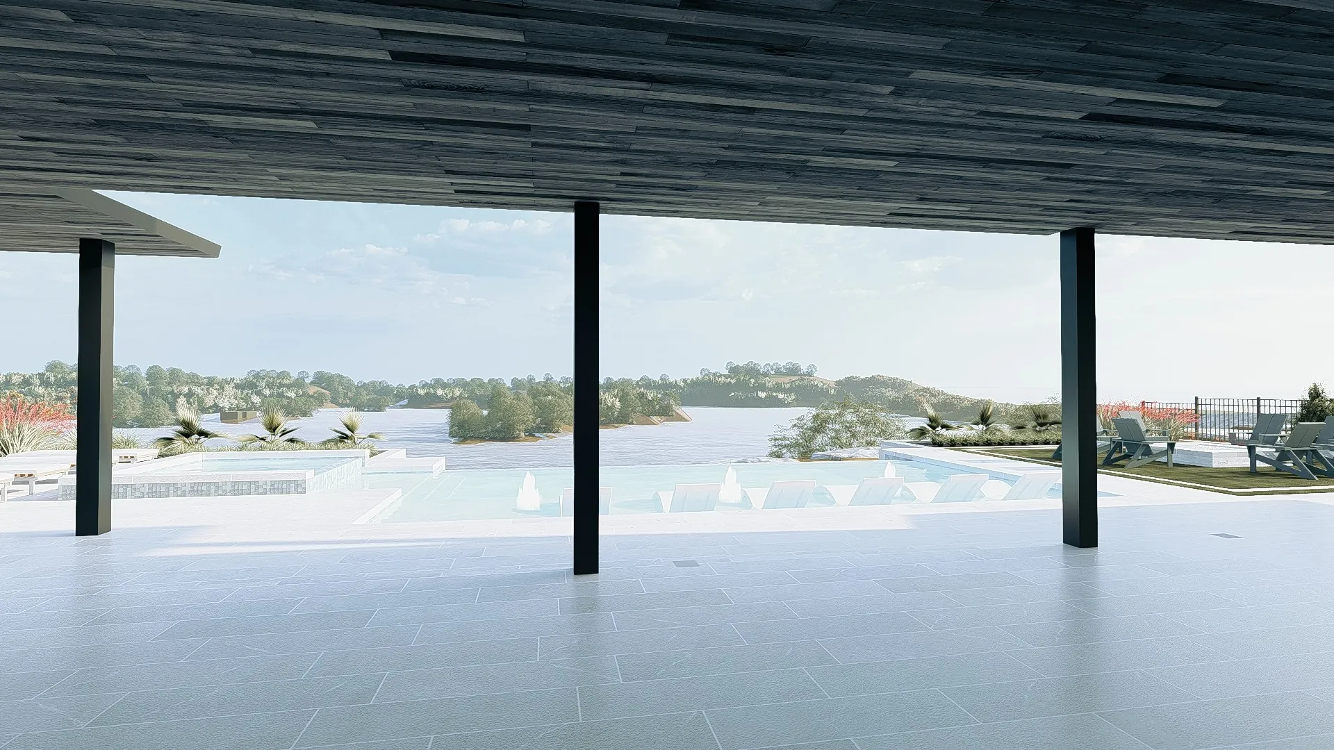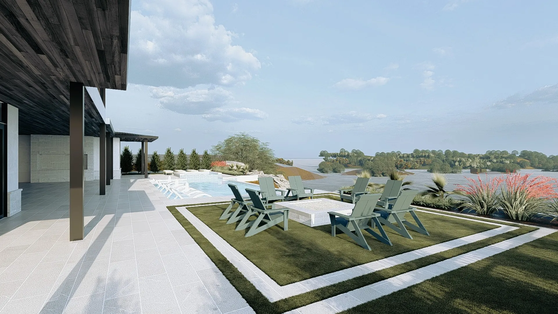 Elegant pool deck seamlessly connecting water features to outdoor living spaces