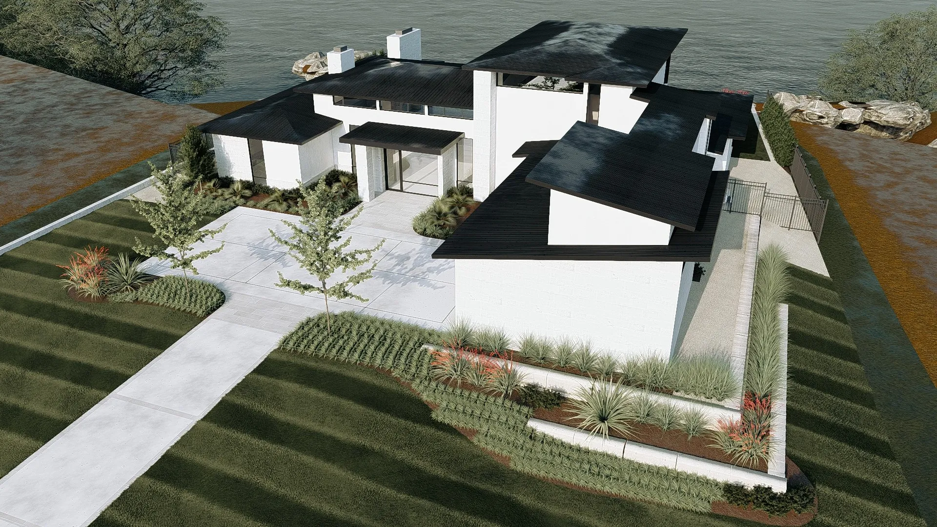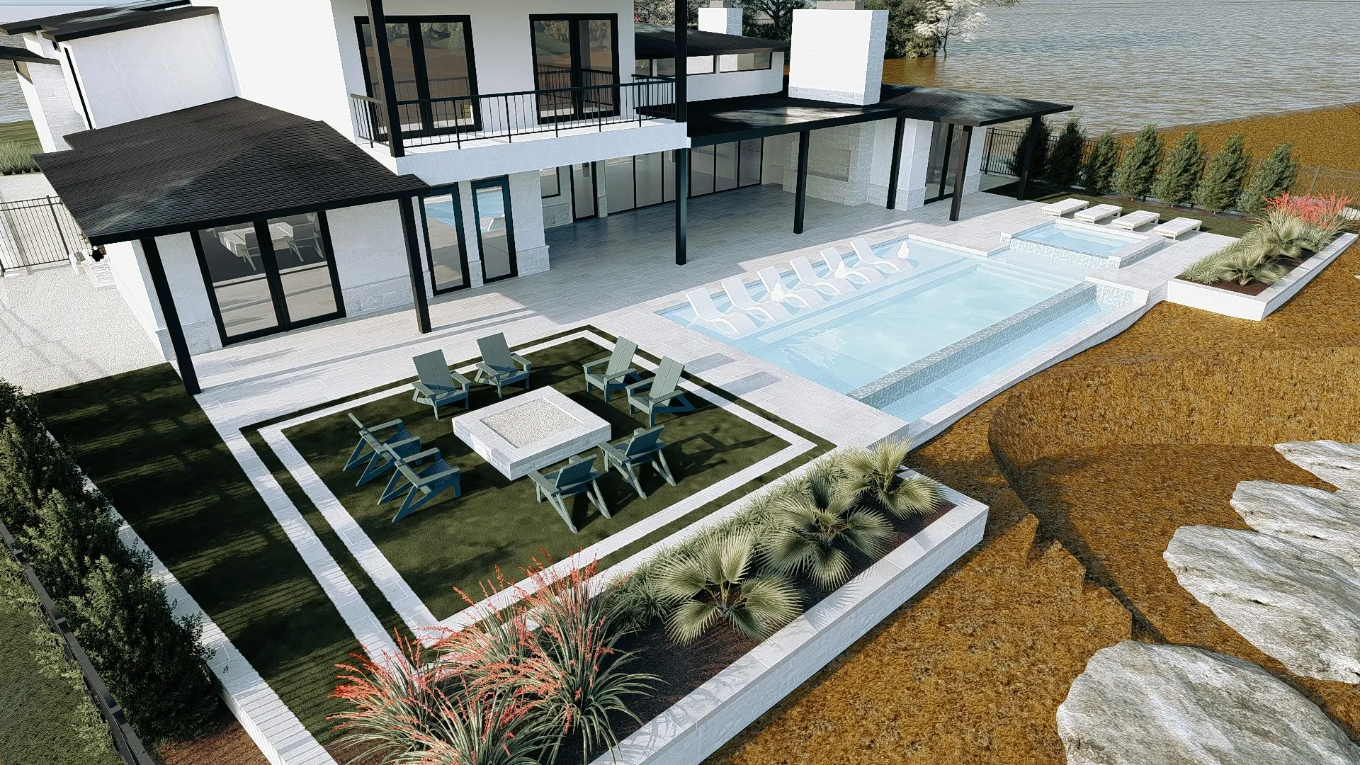Our pre-design phase involved close collaboration with Anderson Fine Homes, ensuring the landscape design would complement and enhance their architectural vision from the ground up.