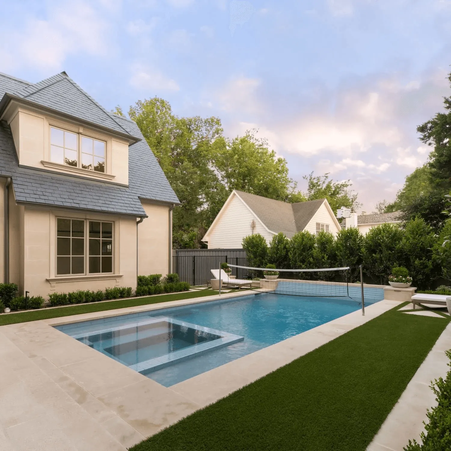 The backyard is designed for living—play, relaxation, and dining all happen naturally in one cohesive space. From the energy of the polo net to the tranquility of the water and the comfort of the lounge, every element works together to create a refined yet inviting outdoor retreat.